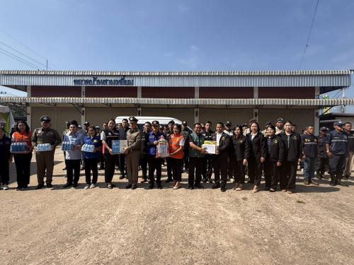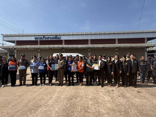 ในการนี้นายปริญญา รัตนศรี พัฒนาการอำเภอ และหัวหน้าส่วนราชการ ร่วมติดตามและตรวจเยี่ยมการปฏิบัติงานตามมาตรการป้องกันและลดอุบัติเหตุทางถนนช่วงเทศกาลปีใหม่ พ.ศ. 2569 ในพื้นที่อำเภอน้ำโสม พร้อมทั้งสนับสนุนอาหาร และเครื่องดื่มสำหรับเจ้าหน้าที่ ที่กำลังปฏิบัติงานในพื้นที่